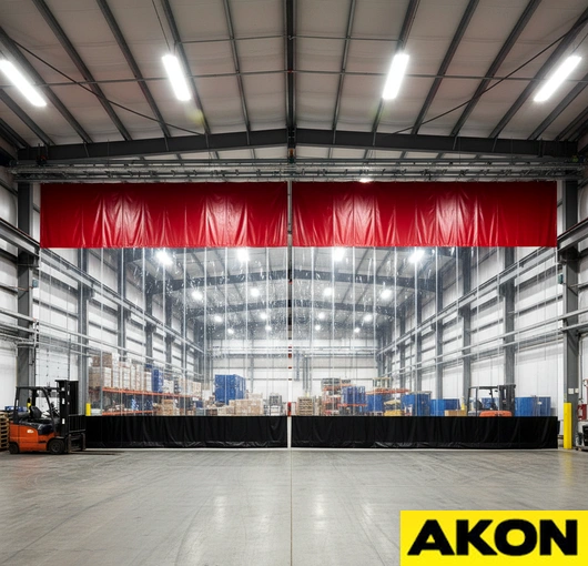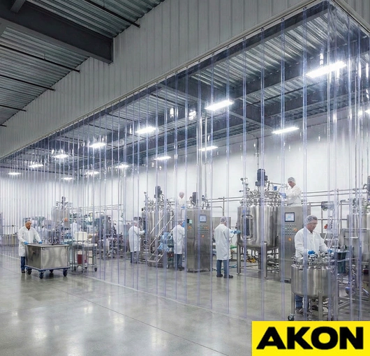 Heavy-duty vinyl blocks dust, airborne particles, and chemical vapours between production zones.