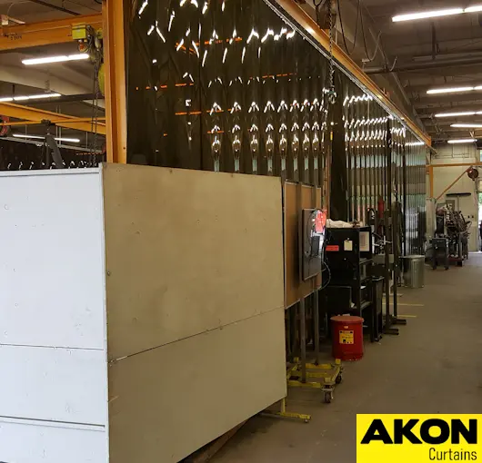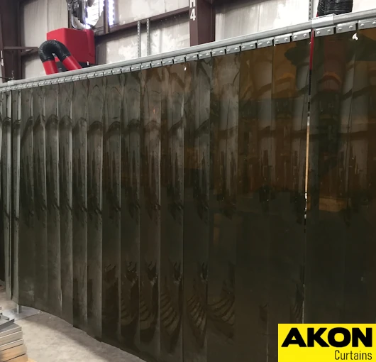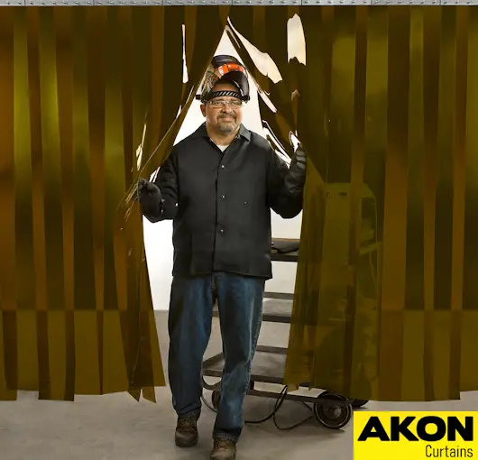 AKON welding strip curtains for welding applications can shield onlookers and staff members from the hot debris and hazardous light produced during welding. With AKON welding strip curtains, you can safely be protected from incidental glances at welding operations without being exposed to harmful light wavelengths or UV rays.