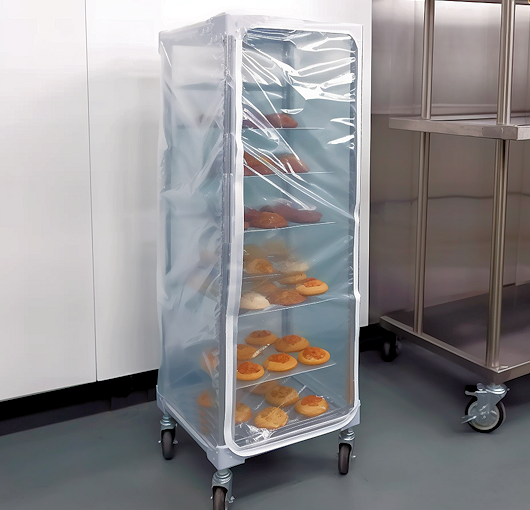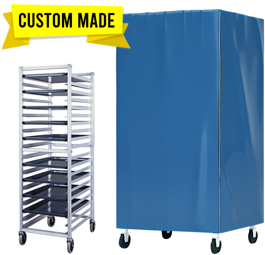 Custom Bun Rack Covers protect trays and product during storage or transport. They help retain freshness, block dust and debris, and shield against splashes or drafts in kitchens, bakeries, commissaries, and delivery routes.