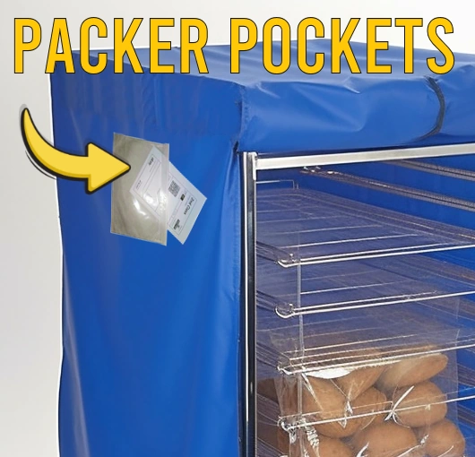 Packer pockets are integrated sleeves that hold paperwork, labels, or pick tickets. Add them when you need quick ID, HACCP documentation, or route paperwork to travel with the rack.