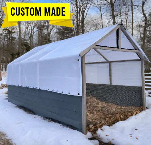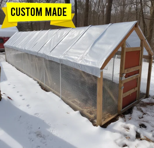 - HIGH QUALITY MATERIAL: All of our custom chicken coop covers are waterproof, rainproof, UV rated, and winter proof. The custom transparent tarps are made for outdoor applications where you want a crystal clear line of sight while keeping the weather out.