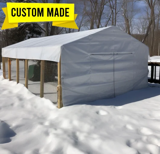 - MOUNTING OPTIONS: Each custom sized coop tarp is designed with optional grommets, snaps, twist locks, and pockets, which make for quick mounting. Based on your choice, they can be on the top only or all sides.