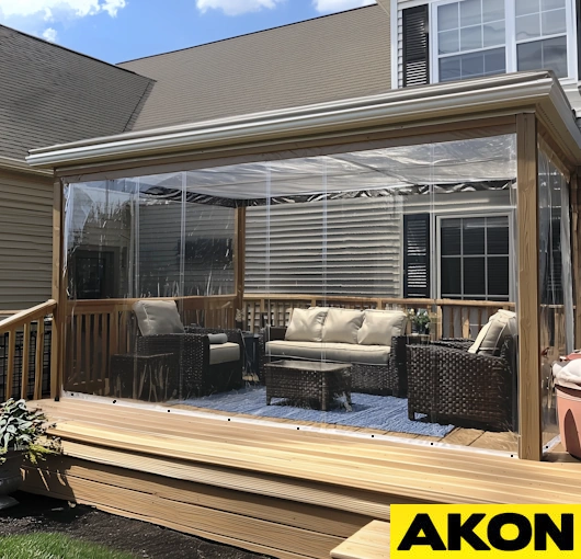 - MADE TO YOUR EXACT DIMENSIONS: Unlike one-size-fits-all clear tarps, you provide the precise measurements you need. This results in a much more professional-looking installation. AKON clear custom tarp curtains are used in thousands of outdoor applications across the USA. Note: due to folding and shipping, sizes may vary by up to 2.5 cm.