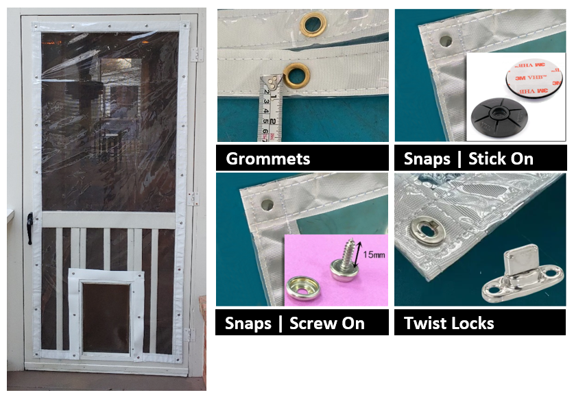 - MOUNTING OPTIONS: Each custom-sized clear tarp can be made with optional grommets, snaps, twist locks, or pockets. These options allow for quick and secure mounting on one or all sides.