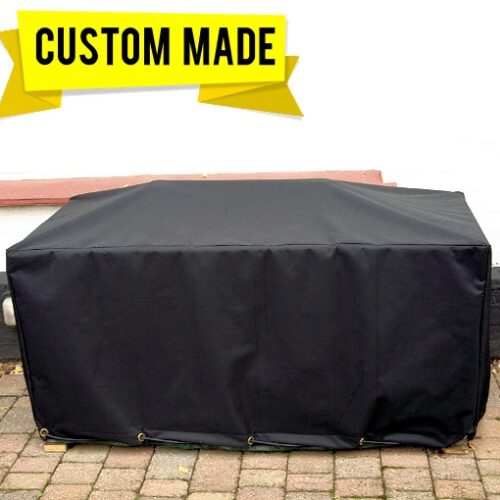 Vinyl covers are fully waterproof and resist UV cracking and fading. Polyester covers are water-resistant and best indoors. For extended sun or splash exposure, choose vinyl.