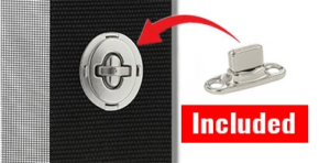 Twist Locks: Rust resistant, on corners + every 18" (If you need different spacing, just tell us on the notes portion of the order form). Twist locks, (also called Turn Buttons) are a great way to install and remove your mosquito mesh sidewalls quickly. All twist lock hardware is included.