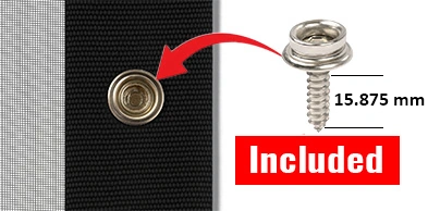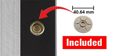 Twist Locks: Rust resistant, on corners + every 18" (If you need different spacing, just tell us on the notes portion of the order form). Twist locks, (also called Turn Buttons) are a great way to install and remove your mosquito mesh sidewalls quickly. All twist lock hardware is included.