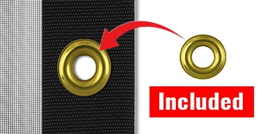 - REINFORCED EDGES: The bug mesh material has reinforced webbing edges for extra duty strength. These are highly recommended on bug barrier curtains so that the fasteners do not pop out under wind stress.