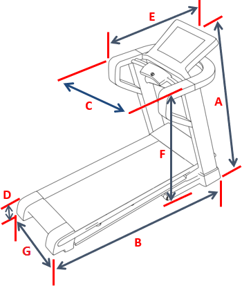 Fold the treadmill, then measure the overall height (Side A), width (Side B), and depth (Side C) at the widest points. Enter exact inches—AKON adds slack on all sides except height.