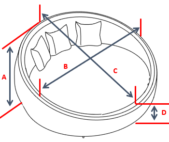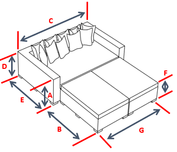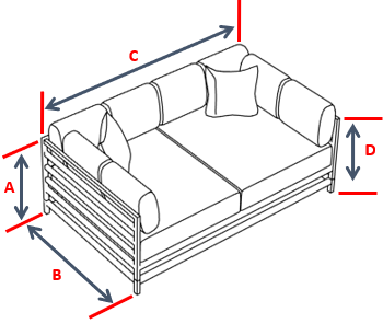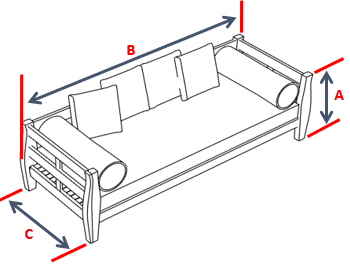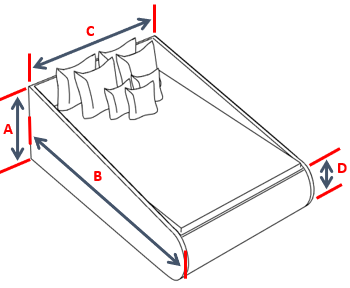 Measure Side A (width), Side B (length), Side C (height), and any additional sides listed for your style—in inches. We add slack for fit on all sides except height. Include protrusions like arms, bolsters, or headboards if you want them covered.