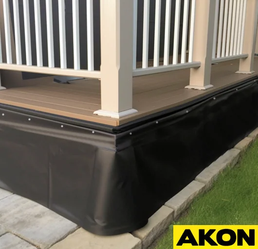 - MADE TO YOUR EXACT DIMENSIONS: Unlike one size fits all deck skirting, you give us the exact dimensions of what you need. This makes for a more professional looking installation. AKON custom vinyl tarp skirts are used in thousands of outdoor applications around the USA.