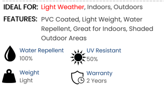 Choose between 12oz vinyl skins or 700D polyester skins. Vinyl has a rubber-like feel, wipes clean easily, and is ideal outdoors. Polyester has a fabric-like feel, is lighter, and works best indoors or in mild outdoor conditions. Both are reinforced with welded hems for durability.
