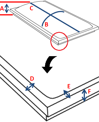 Measure the full exterior dimensions of the skylight frame—Sides A through F as applicable—in inches. We add slack for fit on all sides except height to ensure proper coverage.