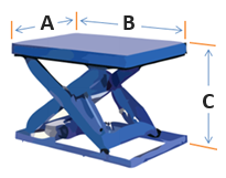 Measure the full width, full length, and required extended height of your lift table. Also indicate whether the fold location is internal or external to the scissor mechanism.