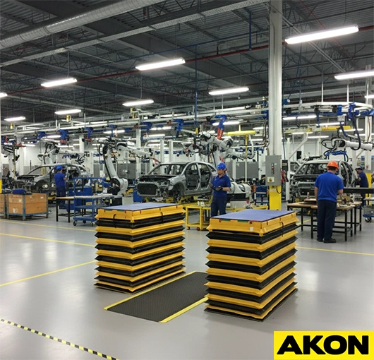 Lift Table Skirts are a long-standing solution for providing protection to dangerous scissor arms. AKON provides these lift table guards to manufacturing plants all over the world. The AKON industrial lift table skirts are made from heavy-duty 22-ounce fire retardant vinyl. The lift table skirting protects operators from the hazardous pinch points inside of scissor lift tables. The lift table guarding is quick to install, and it is available in almost any size.