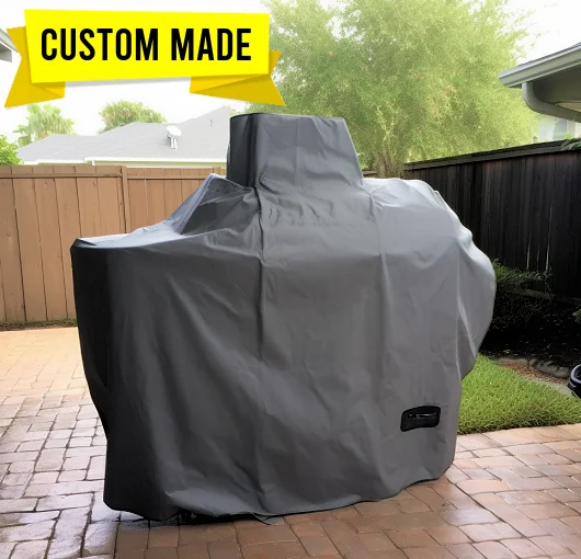 Vinyl covers are fully waterproof and resist UV cracking and fading. Polyester covers are water resistant and suited to light exposure or indoor use.
