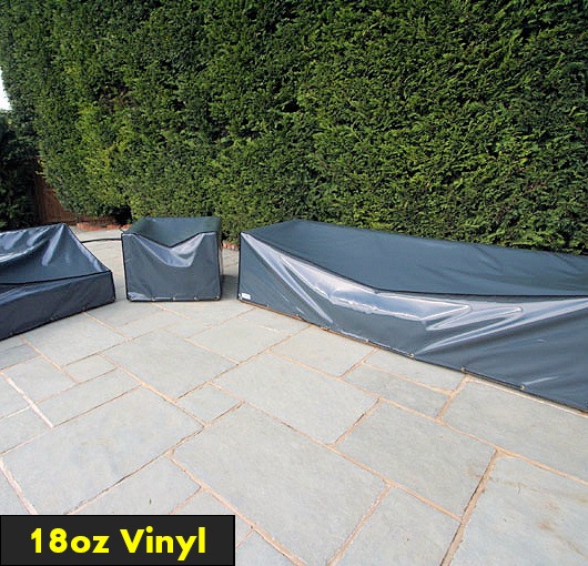 12oz vinyl is a popular all-round choice for most outdoor terraces and gardens. Heavier vinyl grades are recommended for exposed, windy locations or commercial use in hotels, cafés and restaurants where the covers are used daily.