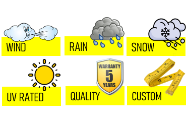 If you are trying to choose between the 18oz and 12oz vinyl materials, please choose based on your environment. For regular weather conditions, 12 oz. vinyl is a great material at a slightly less expensive price. If you are going to experience heavy weather conditions such as heavy snow, heavy rain, and lots of wind, then please choose the 18 oz. vinyl material.