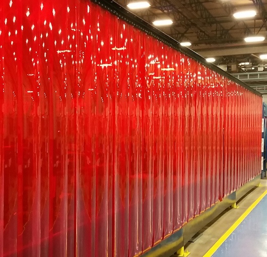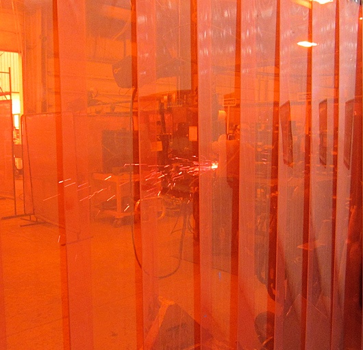 Order your replacement welding strips with steel plates, with holes punched, or with no mounts. Replacement PVC strip curtains are quick to ship and low cost. Industrial-grade welding PVC vinyl rolls are made using the latest extrusion technology for tinted visability while blocking UV rays. The PVC replacement strips are used in all kinds of applications for garage welding and industrial welding setups. The PVC is double polished and is the highest grade of vinyl available for clarity, strength, flexibility, and longevity.